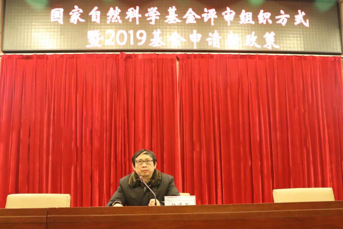 1月10日上午,学校在云塘校区图书馆报告厅召开了“国家自然科学基金评审组织方式暨2019基金申请新政策”交流会,会议由副校长杨伟军主持,计通学院王进教授作交流报告,科研部领导,部分学院院领导、老师、科研管理人员等200余人参加了会议。