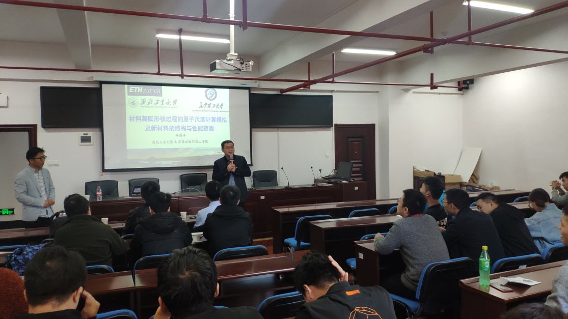 2019年10月28日下午,在新能源大楼1A- 302多功能会议室,材料科学与工程学院邀请了西北工业大学牛海洋教授作题为“材料凝固形核过程的原子尺度计算模拟及新材料的结构与性能预测”的学术报告。报告会由院党总支书记张国强主持,材料学院70师生聆听了报告。