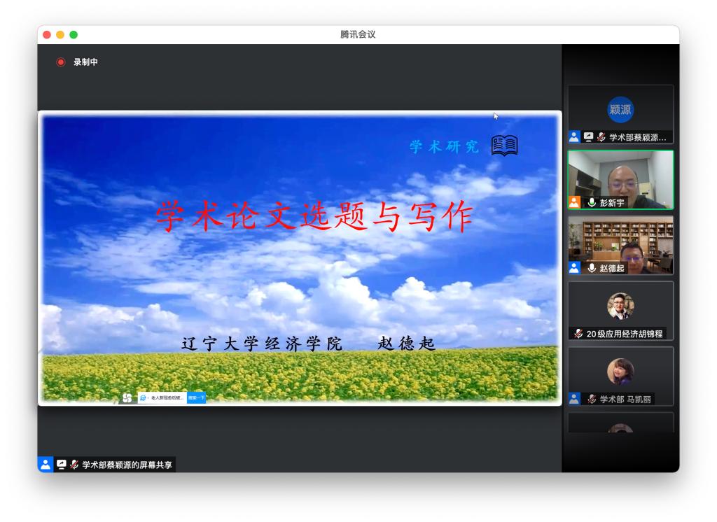 11月17日晚,辽宁大学经济学院副院长赵德起开展了“学术论文选题与写作”线上专题讲座。此次讲座是第十六届研究生博力学术论坛之经济全球化与管理创新专题论坛第三期,讲座由我校经管学院院长陈银娥主持,副院长彭新宇、辅导员周路路及学院近300名硕士研究生、本科生参加。