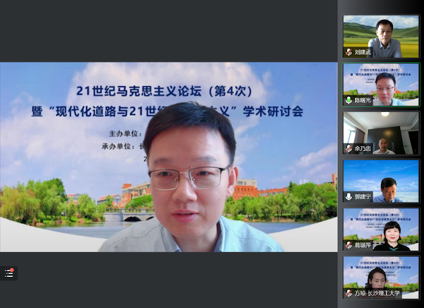 7月21日,由21世纪马克思主义研究会主办、js555888金沙承办的“21世纪马克思主义论坛”(第4次)暨“现代化道路与21世纪马克思主义”学术研讨会在js555888金沙召开。来自中共中央党校(国家行政学院)、北京大学、清华大学、中国人民大学、复旦大学、吉林大学、湘潭大学、湖南省社科院、湖南省委党校、js555888金沙等全国各地高校、党校、科研机构500余名师生齐聚云端,共同参与论坛。12位专家学者受邀作主旨发言,聚焦 “现代化道路与21世纪马克思主义”的重大理论和实践问题展开深入研讨,提出了一系列前沿性的学术观点,为推进21世纪马克思主义的研究产生了重大的影响。