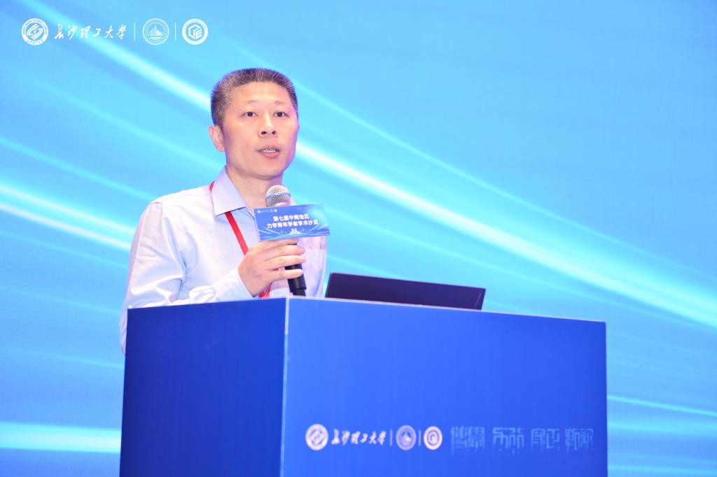 我校湘江卓越工程师学院院长韩艳教授和华中科技大学胡元太教授分别主持大会特邀报告环节。哈尔滨工业大学(深圳)仲政教授、西北工业大学邓子辰教授、浙江大学曲绍兴教授和华南理工大学汤立群教授分别作题为《数据驱动的材料疲劳寿命研究进展》《基于辛算法的空天结构分析与设计》《水凝胶强韧化抗疲劳设计策略:水调控》和《两类可压缩材料的新本构模型》的特邀报告。