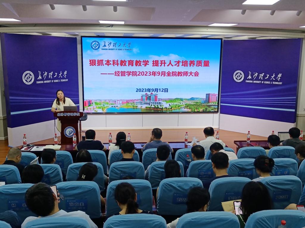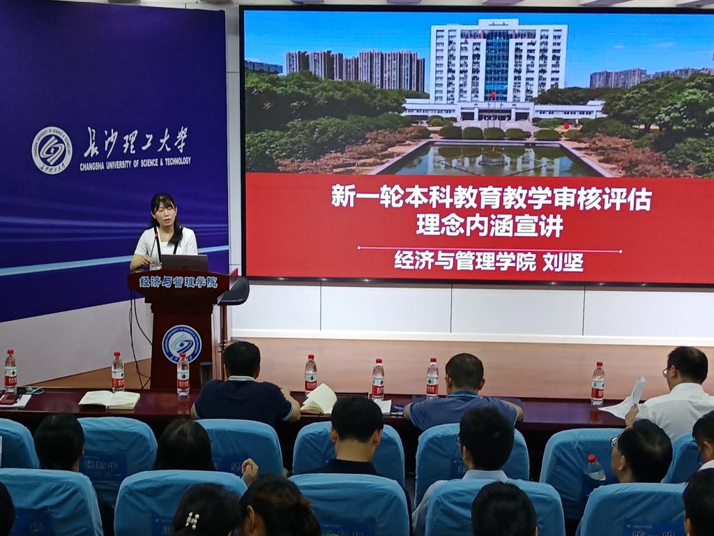 为深入贯彻落实学校关于新一轮本科教育教学审核评估工作精神,严格按要求高质量推进学院审核评估工作,9月12日下午,经管学院在金盆岭校区12教200报告厅召开本科教育教学审核评估专题学习会。院领导班子成员及全体教职工参会,会议由院党委书记丁丹主持。